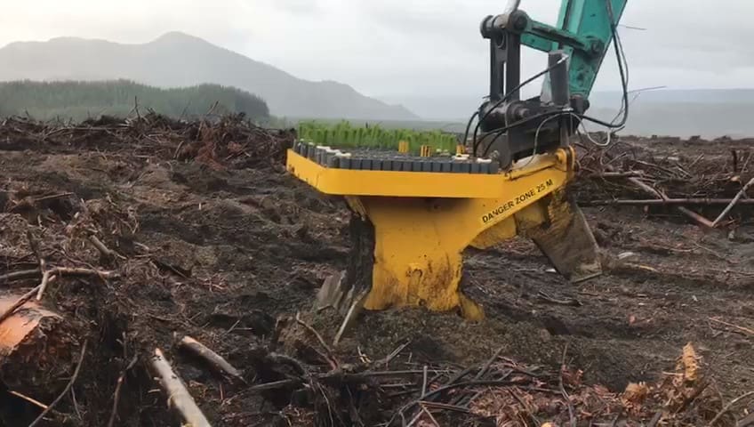 When planting on steep terrain M-planter recommends the installation of a coupler tilt for excavator.