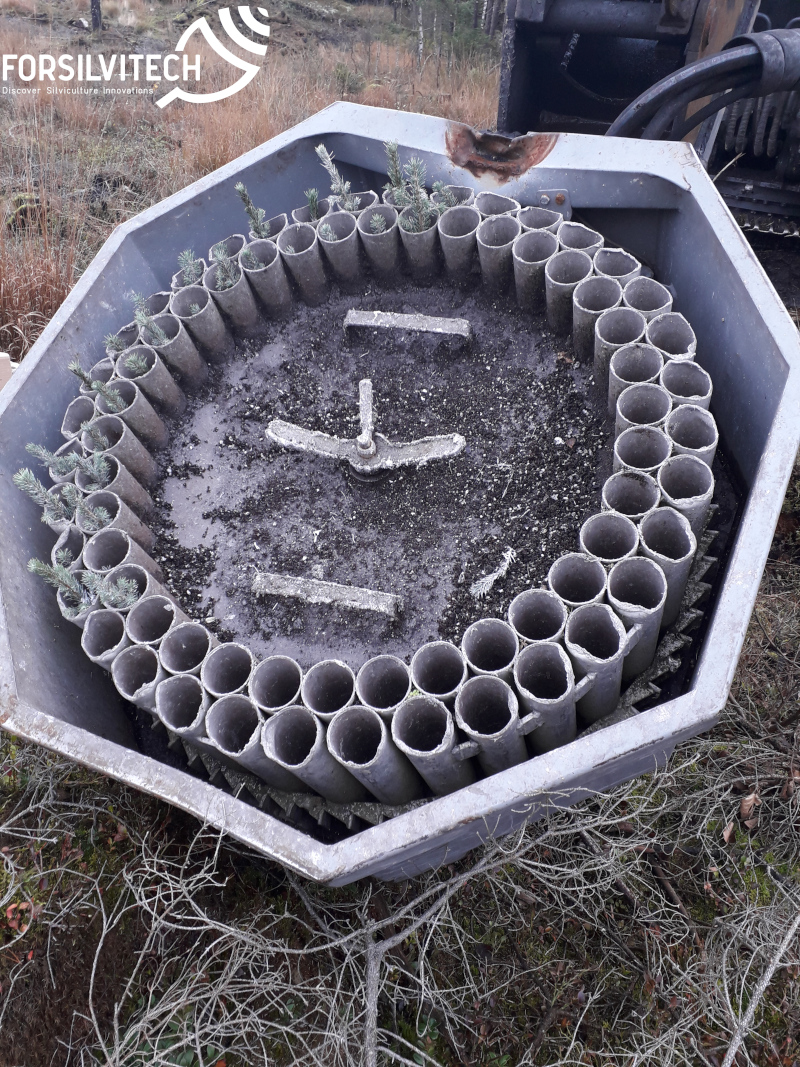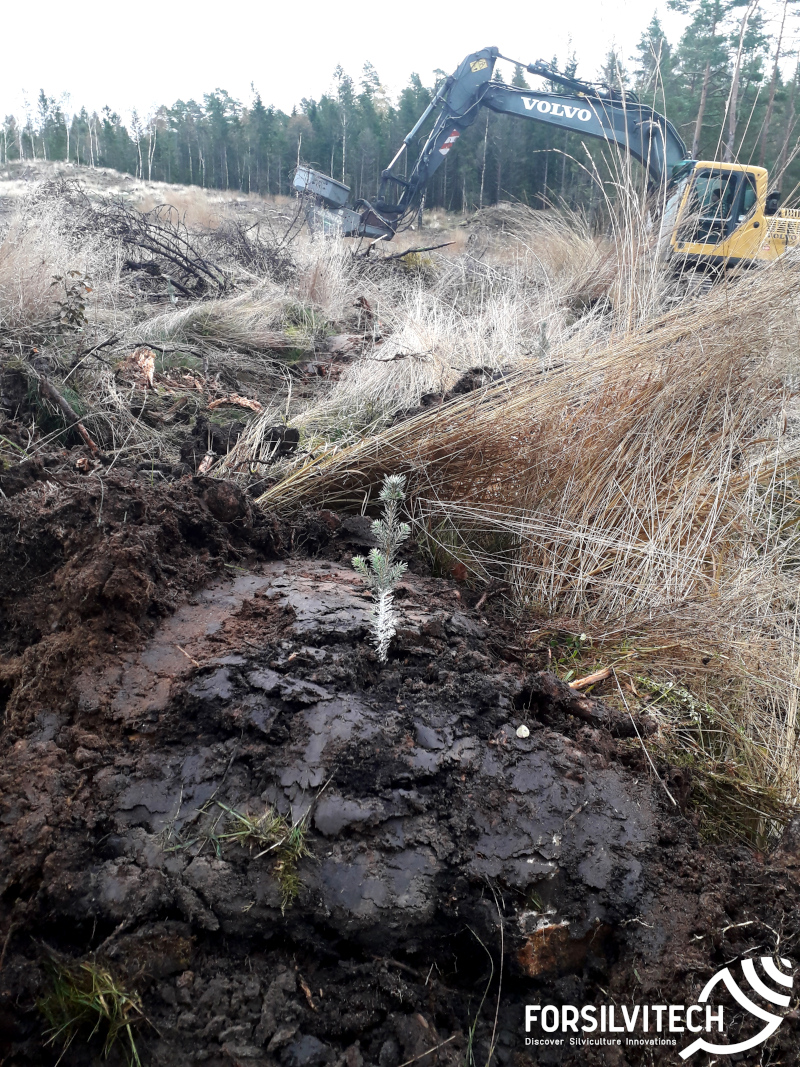 Mechanised planting with excavator with Bracke P11a